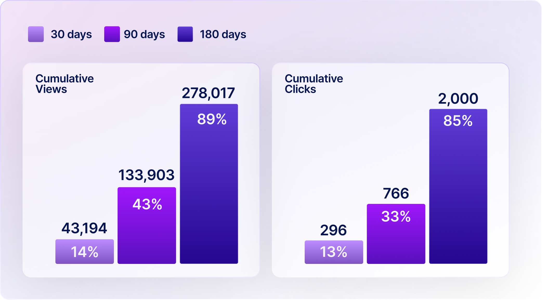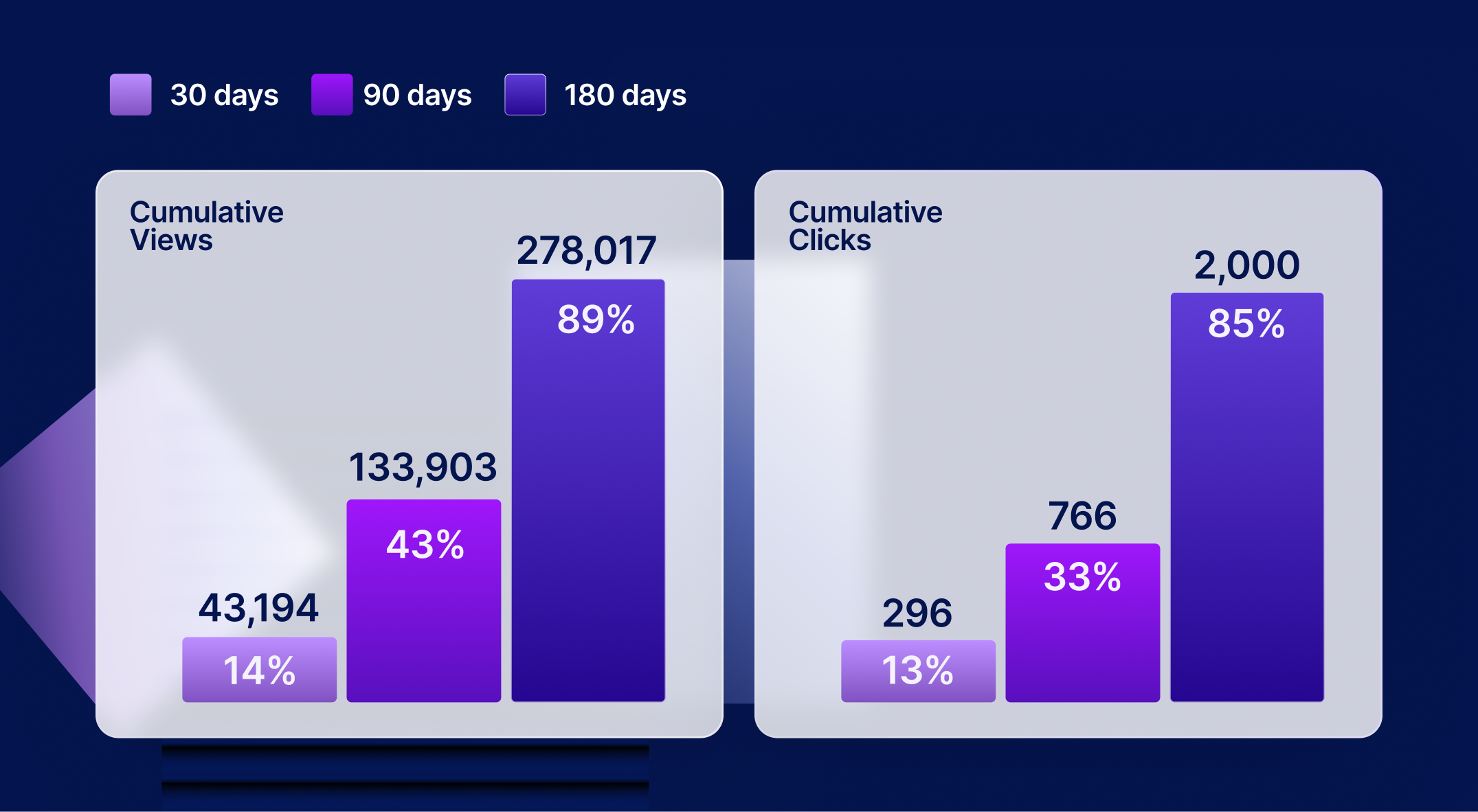 In fact, our recent analysis shows that on average, 40% of views and 30% of clicks occur more than 30 days after an integration goes live.