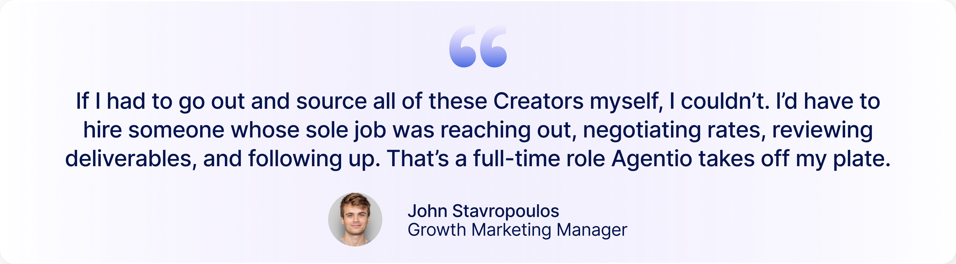 Rather than treating Creators as one-off tests, Agentio enabled the team to think of Creator marketing as a true media channel - like paid search or display - with native storytelling advantages.