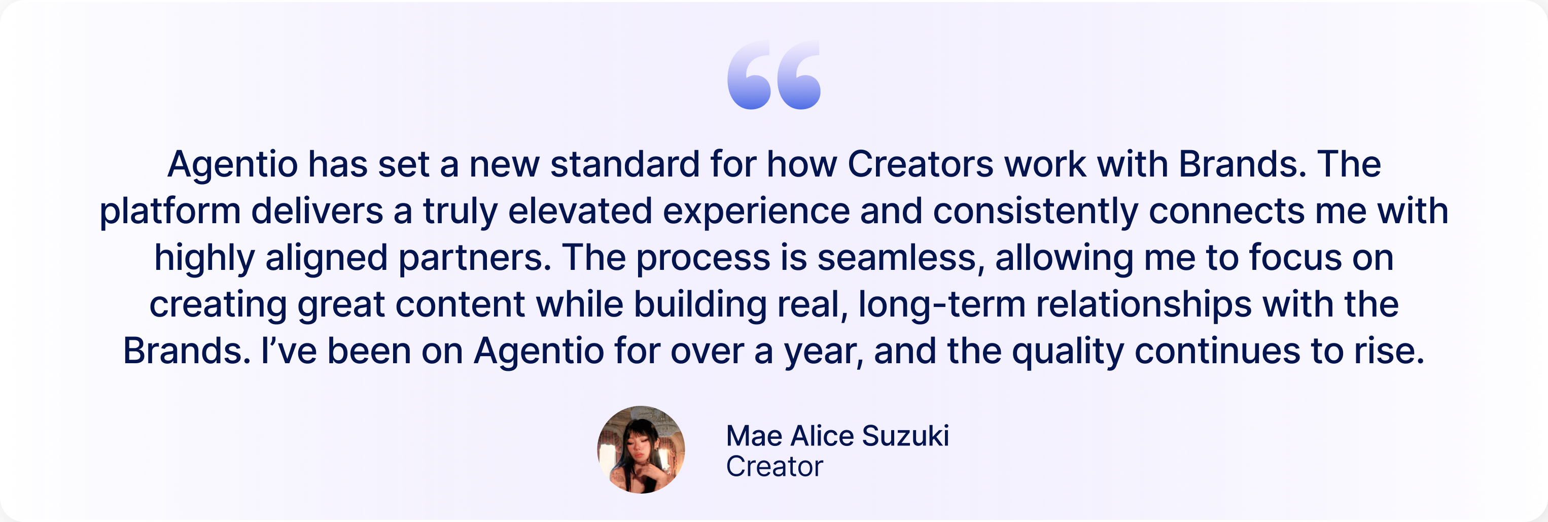 Agentio pairs every Creator with brands that fit their voice and audience - so integrations feel native and drive real sales. As a result, Brands see better results across the board, booking and renewing Creators more frequently.