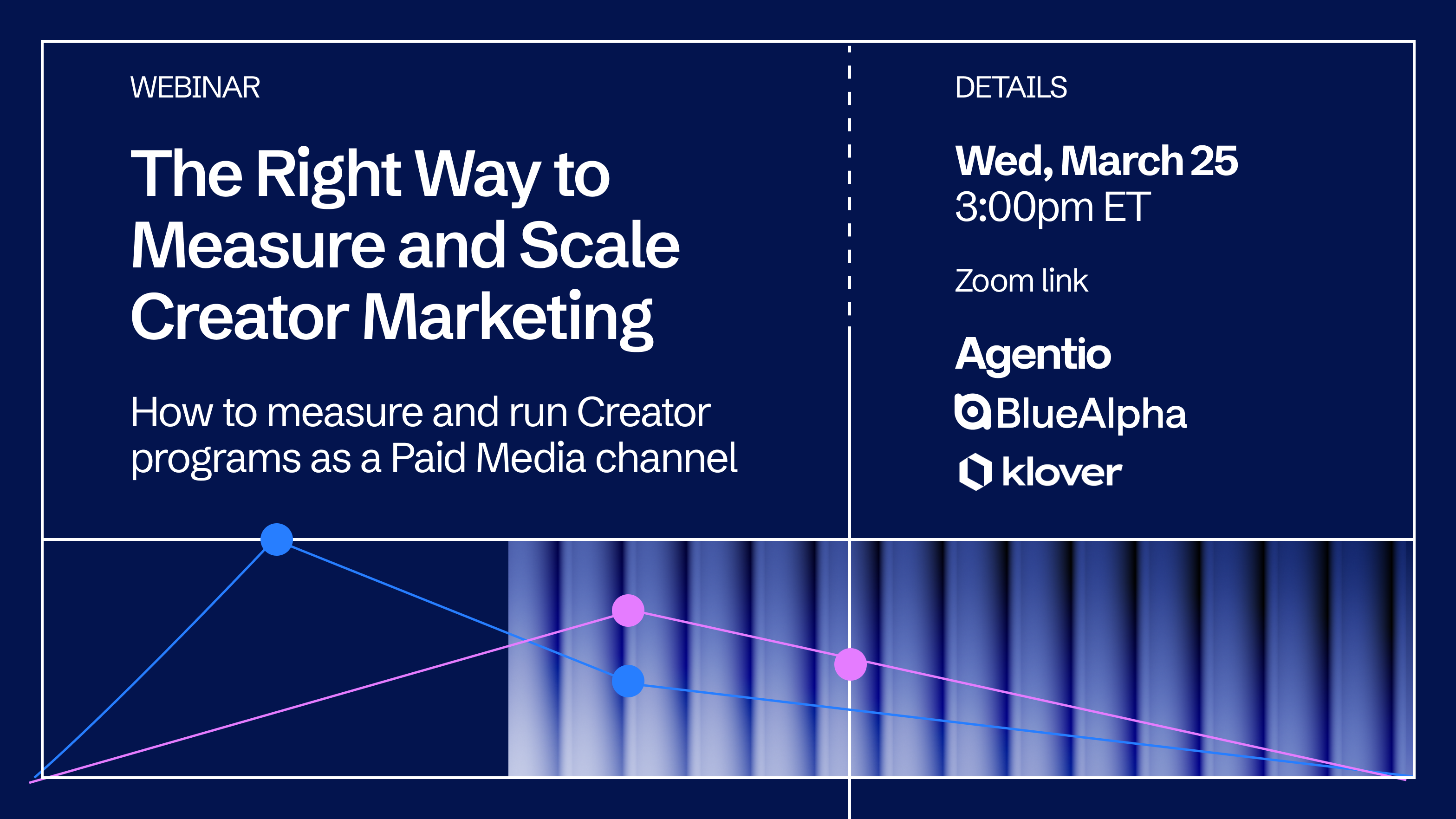 In thi webinar, Agentio and BlueAlpha will show you how to measure the true impact of Creator Marketing — with Klover joining live to share how getting this right led them to double their Creator spend.